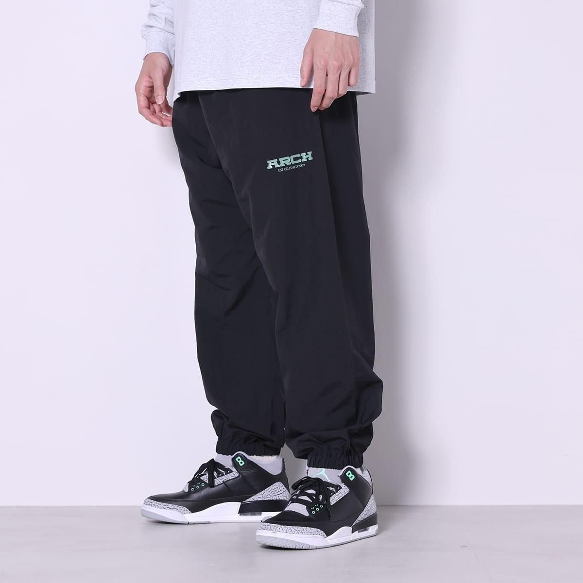 ・カラー:ブラック ・素材:ナイロン100% Archオンラインストア限定アイテム。 ブロック調のフォントでデザインしたArchロゴをプリントした、シンプルなナイロンパンツ。 ・軽量のナイロン生地を採用。 ・ミリタリーテイストを思わせるルーズな着用感。 ・裾口はフィット感を持たせるためのシャーリング仕様。 ・ウエストには調節可能な丸ヒモ付。 同シリーズの【go out wide L/S tee】【go out cap】とのコーディネートが楽しめる。 バリエーションはグレー、ブラック、チョコレートの3色を用意。