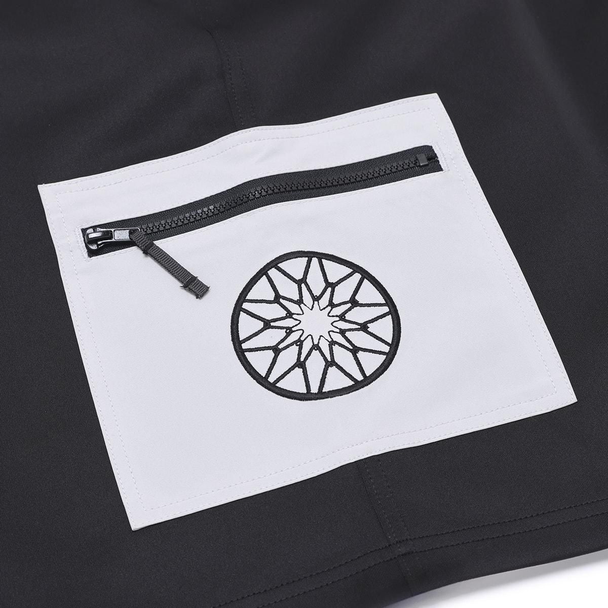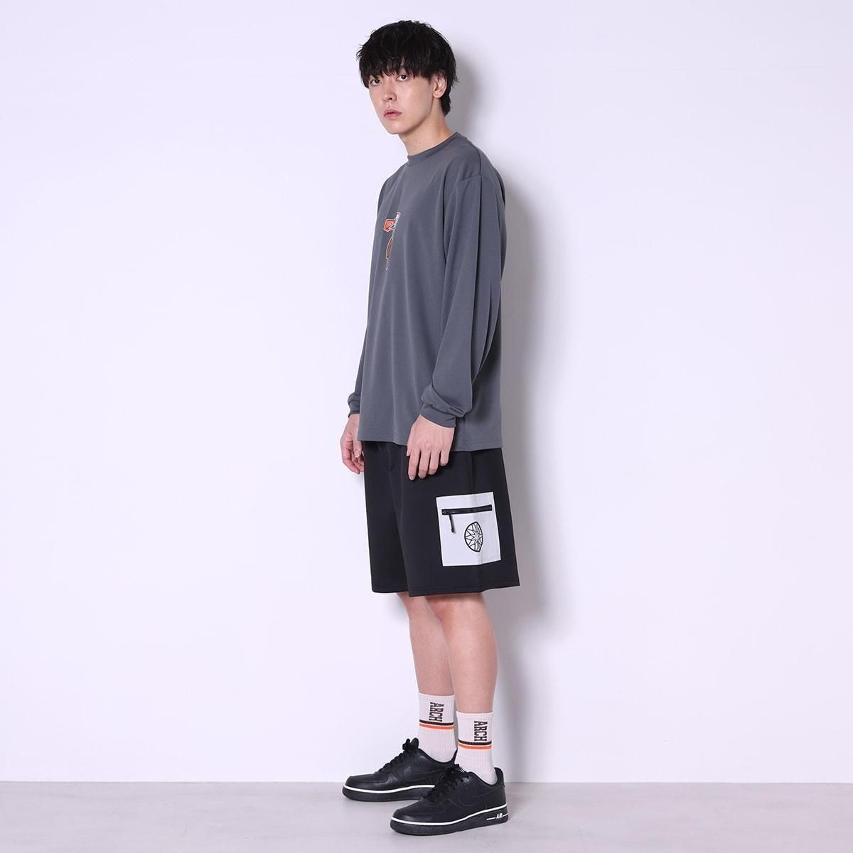 ・カラー:ブラック/シルバー ・素材:ポリエステル95%、ポリウレタン5% バスケットゴールのリングネットをデザインしたコレクションのショートパンツ。 オンコートはもちろん、タウンユースなど幅広いシーンで活躍するスタイリッシュアイテム。 ・左足に配置したファスナー付のポケットがアクセント。 ・両サイドポケットと、バックのファスナー付ポケットも装備。 ・総丈は少し長めで、ゆったりとしたシルエット。 ・厚手で密度の高い高品質なジャージ生地を採用。 同シリーズの【BB rim collection】でコーディネートが楽しめる。 バリエーションは、ブラック/パープル、ブラック/ゴールド、ブラック/シルバーの3色を用意。 モデル:身長188cm 着用サイズ:トップスXXL、ボトムスXL