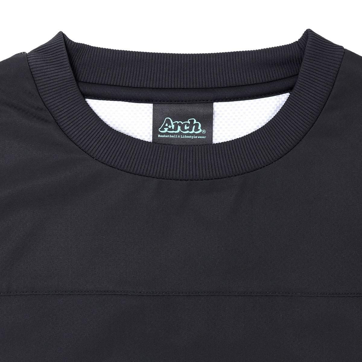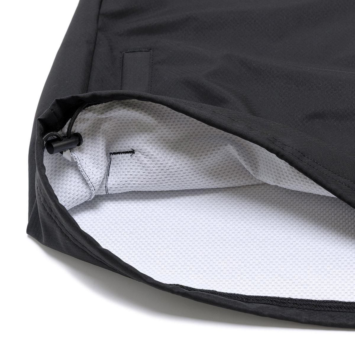 ・カラー:ブラック ・素材: ポリエステル100% カレッジ調のロゴをフロントにビッグサイズでプリントしたウインドクルーネックシャツ。 ・着心地のよいハニカムメッシュのポリエステル素材を採用。 ・着脱が簡単で、ズボッとカブれるゆったりめのシルエット。 ・サイドポケット付きで、デイリーユースのアウターとしても活躍。 ・裾はドローコード付で、保温調整と好みのシルエットへの調節が可能。 バリエーションは、ブラック、ネイビー、モーブの3色を用意。 モデル:身長190cm 着用サイズ:トップスXXL、ボトムスXXL