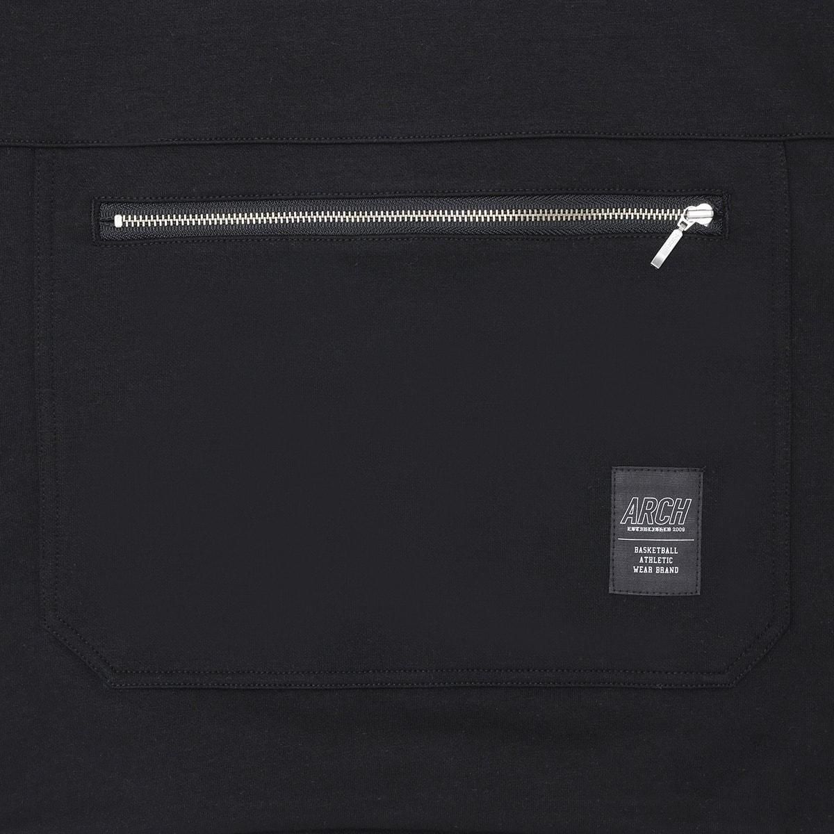 ファスナー付の大きなポケットをフロントに装備したスタイリッシュなデザイン。