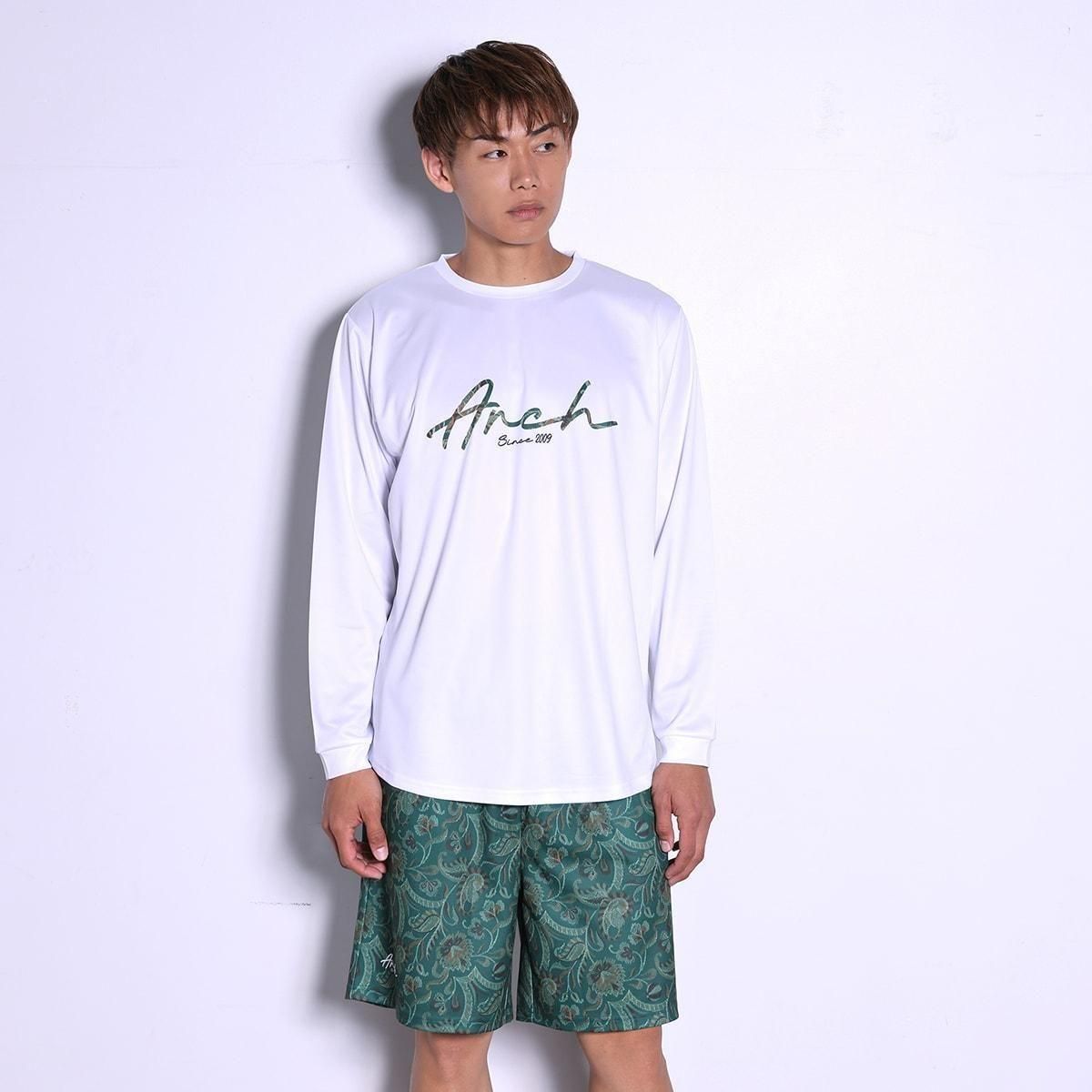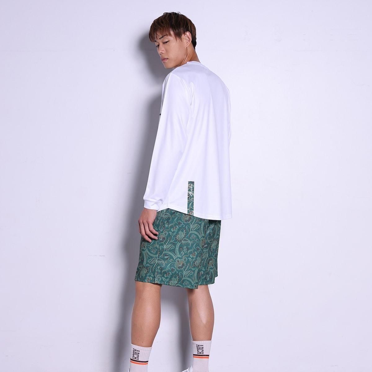 ・カラー:ホワイト ・素材:ポリエステル100% 絵画のように複雑な模様の伝統的な織物技法「ゴブラン織」をモチーフにしたデザインを、ロゴにレイヤードしたDRY-L/S Tシャツ。 スポーティーなスタイルに、アンティーク調のクラシカルな雰囲気をプラス。 肌触りのよい、吸汗・速乾性に優れたポリエステルを採用。 同シリーズの【gobelin fabric collection】とコーディネートが楽しめる。 バリエーションはホワイト、ブラック、モーブグレーの3色を用意。 モデル:身長190cm 着用サイズ:トップスXXL、ボトムスXXL