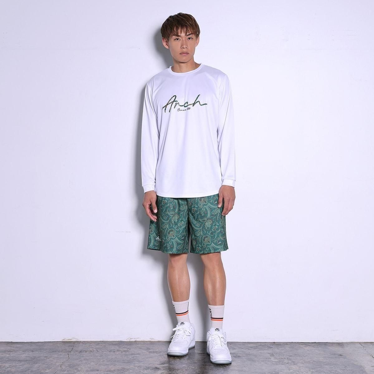 ・カラー:グリーン ・素材:ポリエステル100% 絵画のように複雑な模様の伝統的な織物技法「ゴブラン織」をモチーフにしたデザインを、全面にあしらったショーツ。 存在感のある織物の立体感や重厚感に、アンティークのような独特の魅力が際立つ。 軽量で履き心地がよく、程よい厚みの柔らかいポリエステル素材を採用。 同シリーズの【gobelin fabric collection】とコーディネートが楽しめる。 バリエーションはグリーン、ナイルブルー、ブラックの3色を用意。 モデル:身長190cm 着用サイズ:トップスXXL、ボトムスXXL